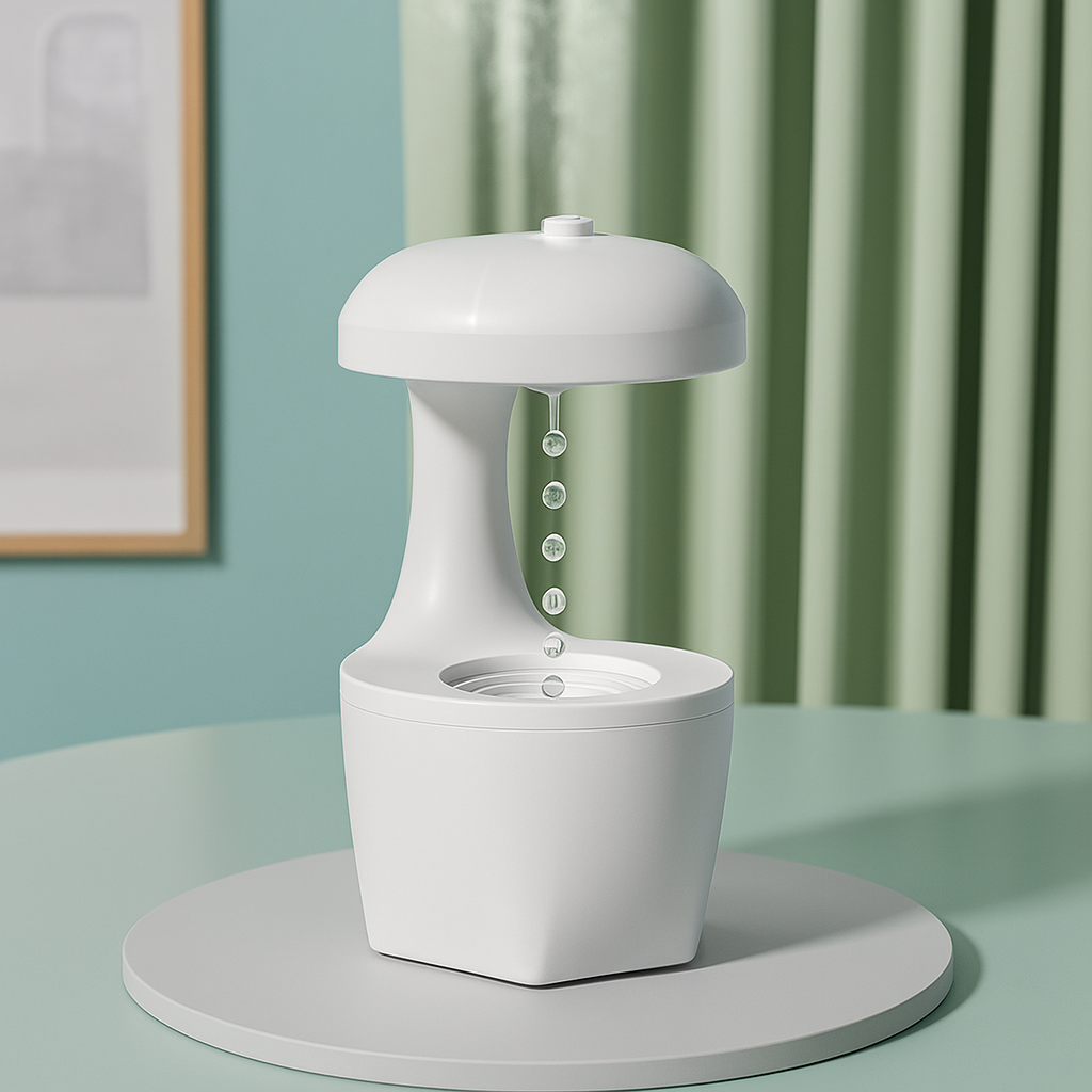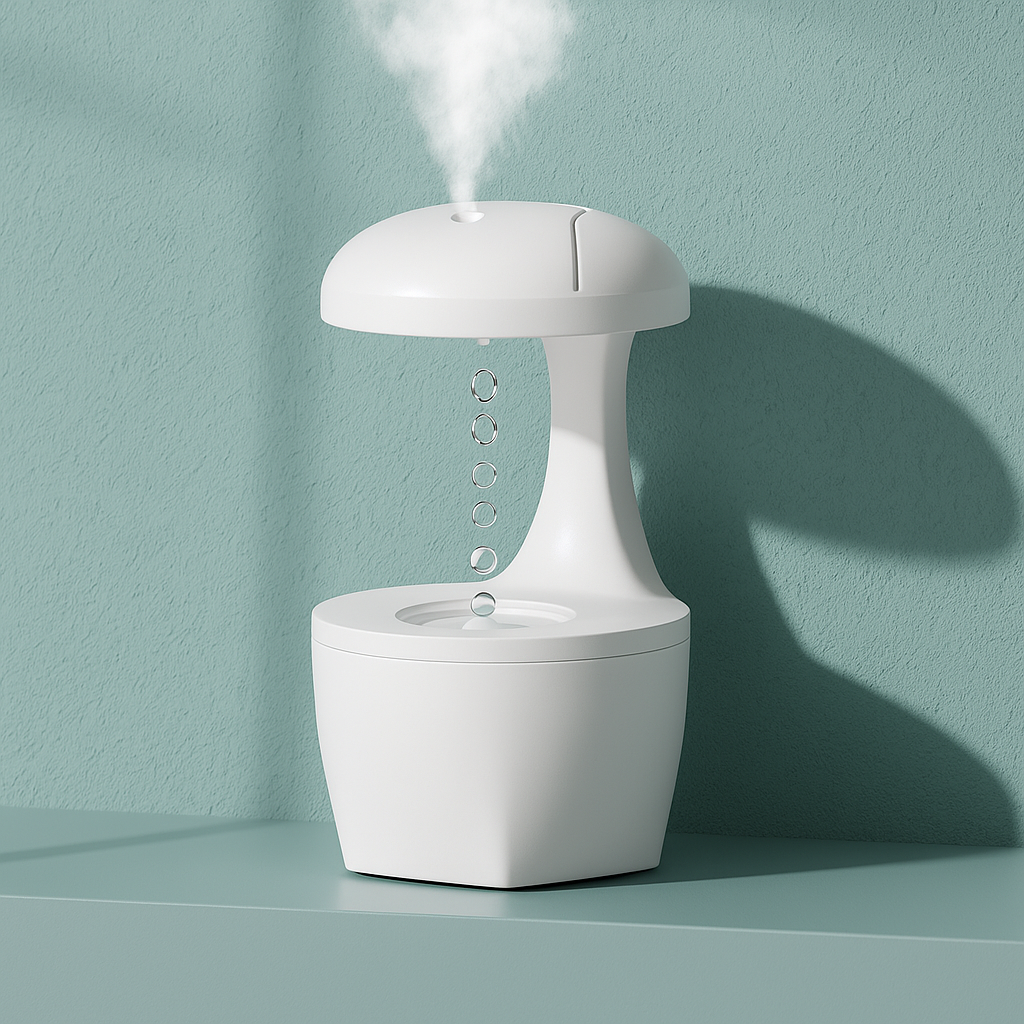 Het strakke, moderne ontwerp past in elk interieur en de zichtbare waterdruppels zorgen voor een uniek visueel effect. Voeg je favoriete etherische olie toe voor extra ontspanning en een aangename geur in huis.