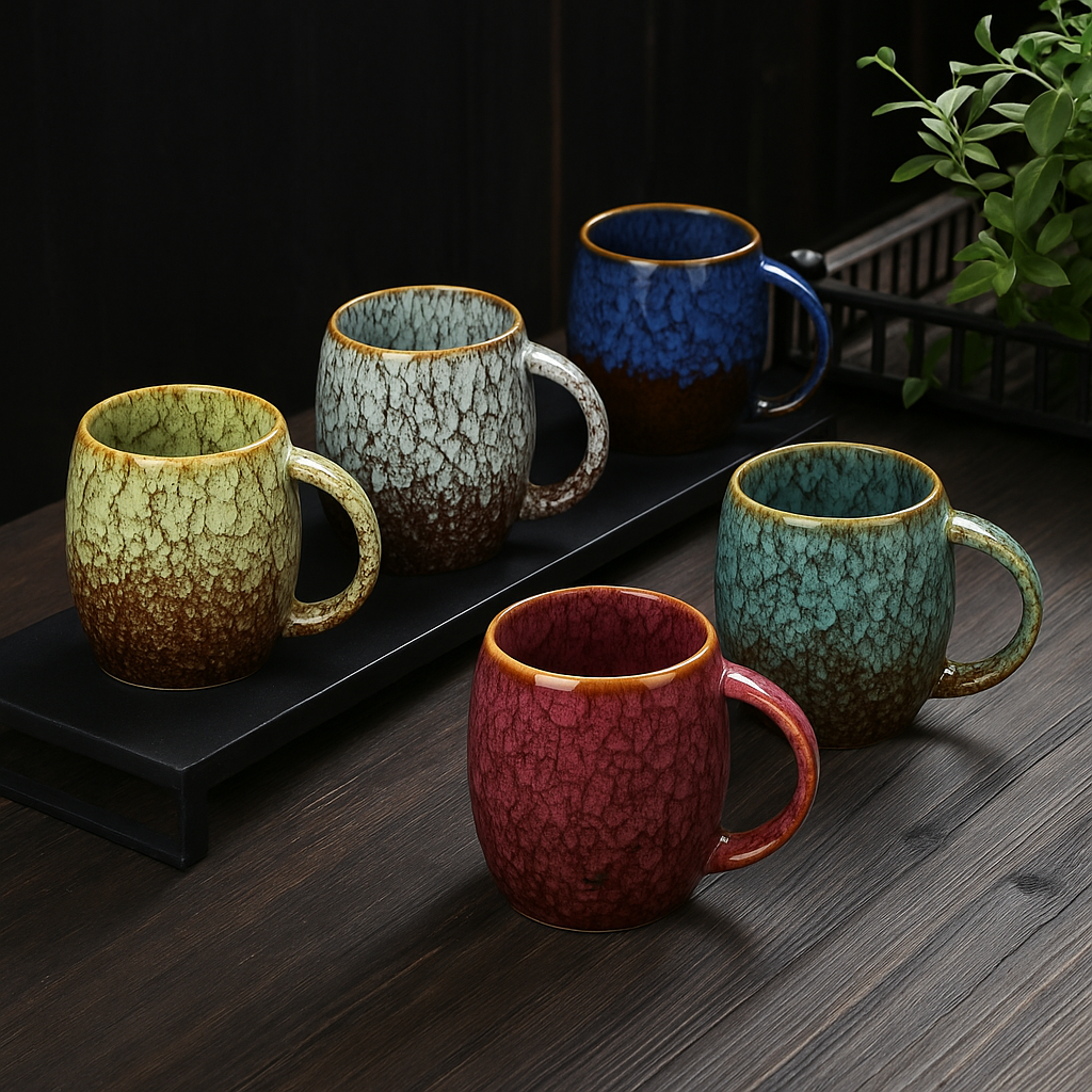 Grote Keramische Koffiemok - Japans Design, Uniek Retro Patroon - Mok 500ml