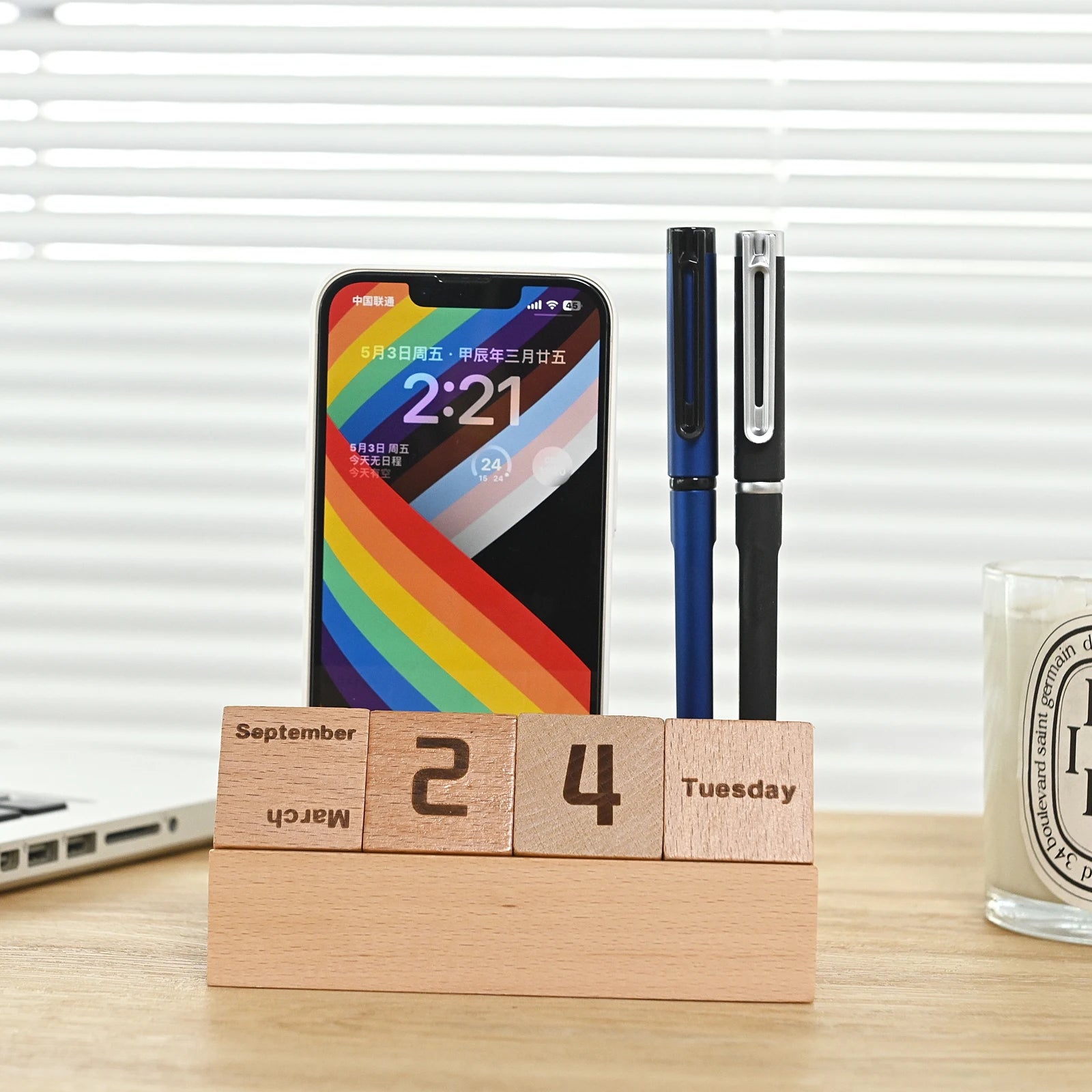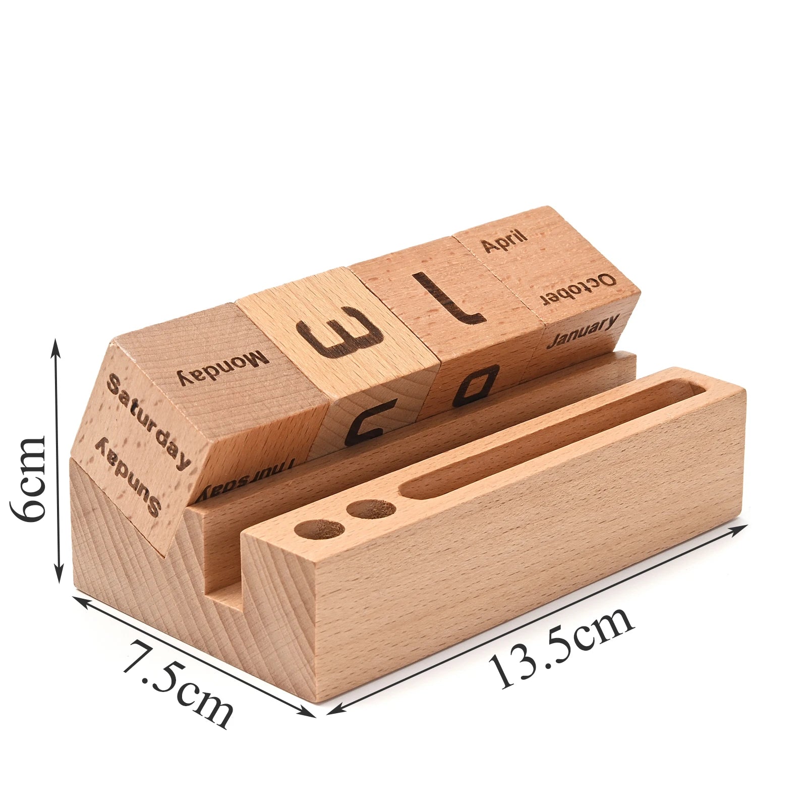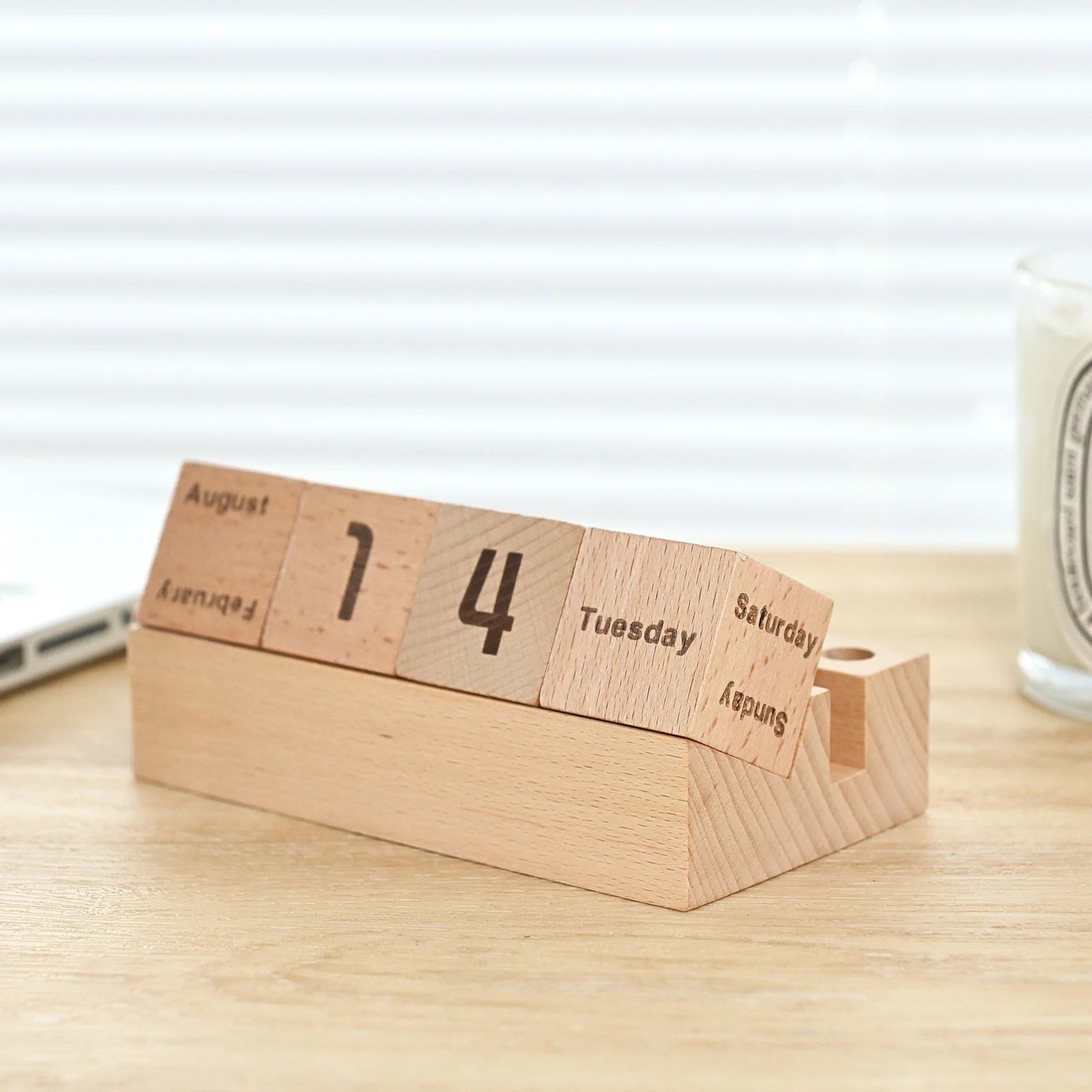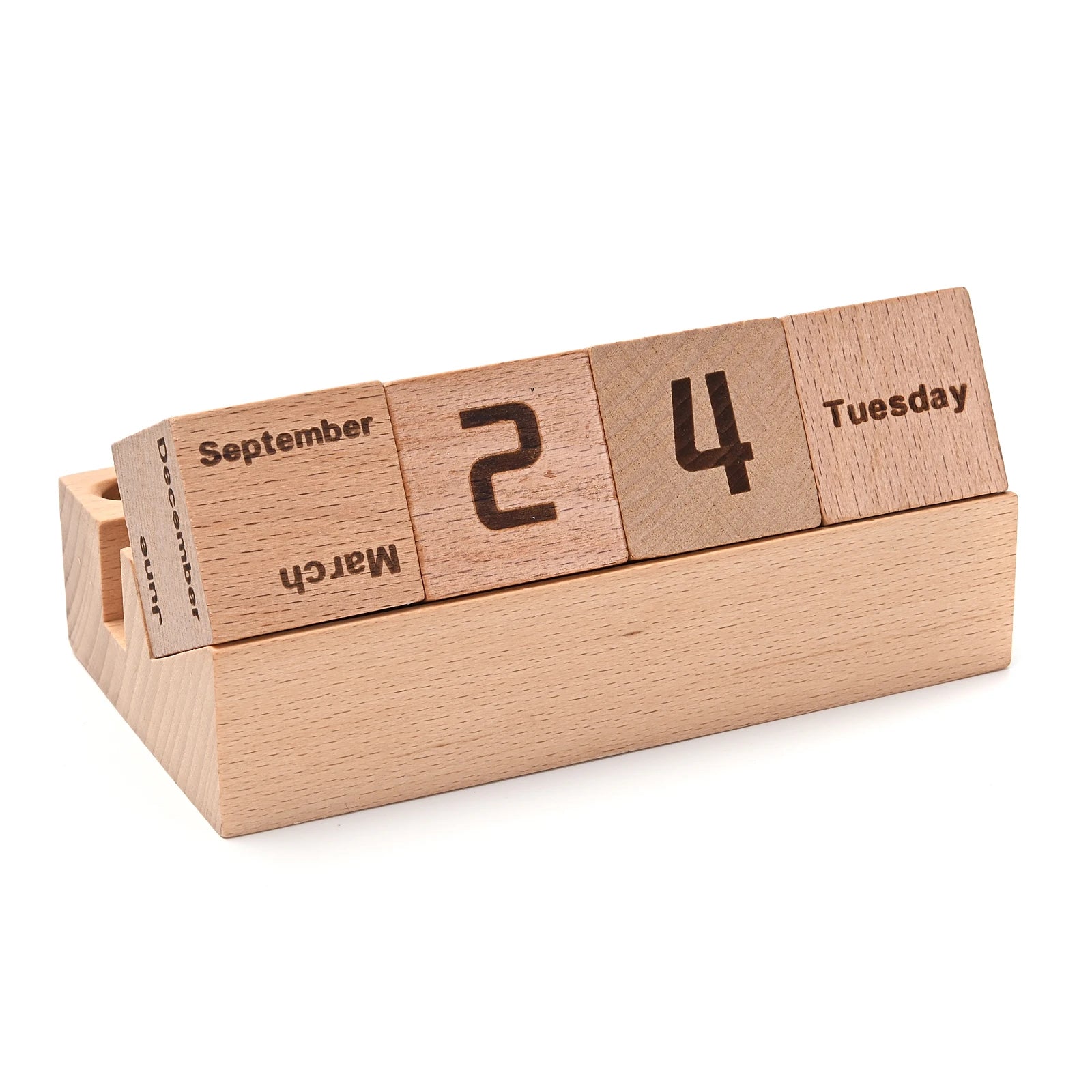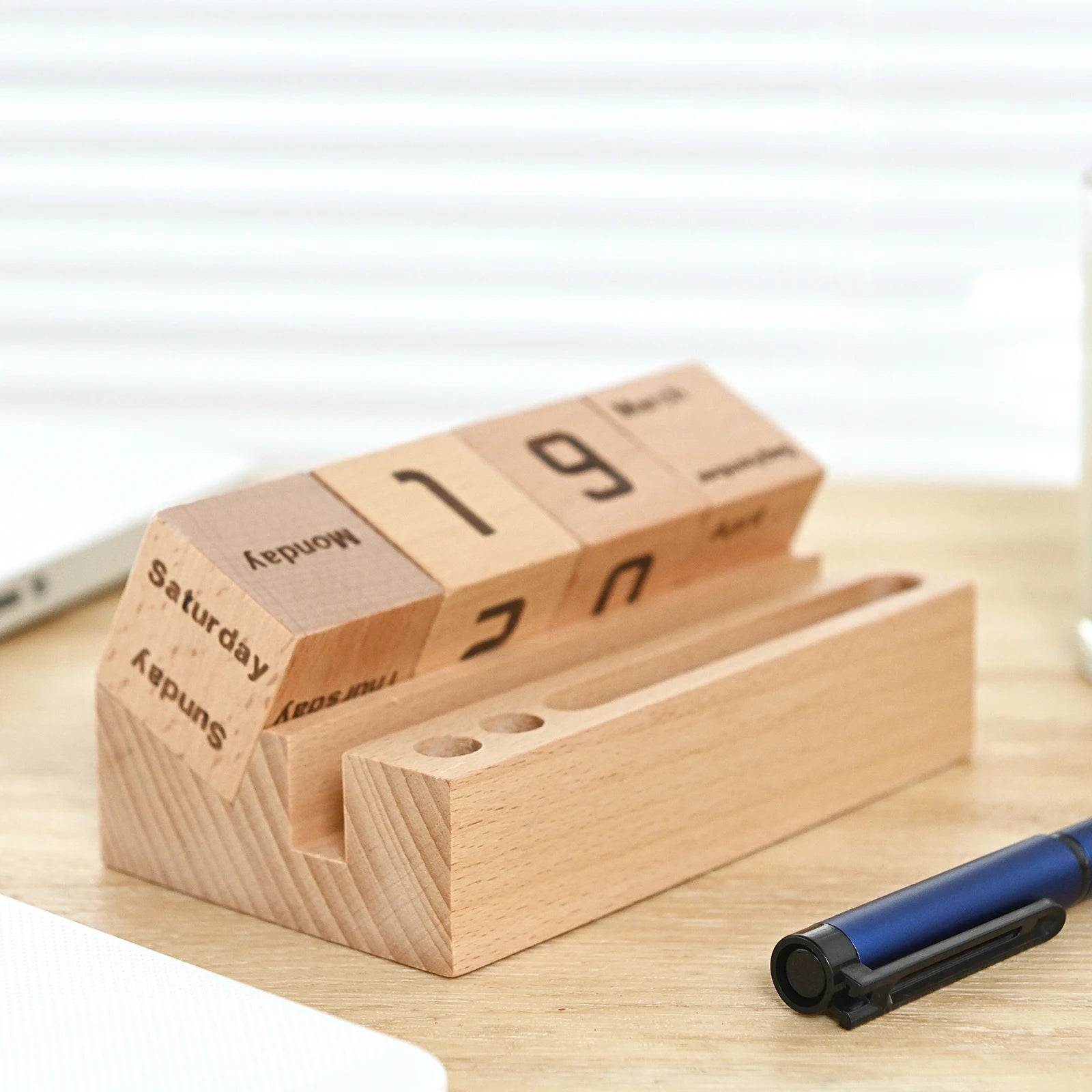 Houten Kalender met Draaiblokken – Bureau Accessoire