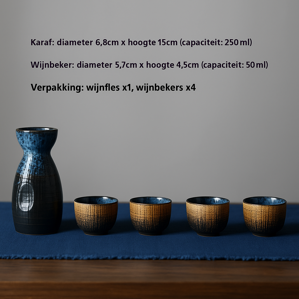 Japanse Sake Set van Keramiek – Traditionele Karaf met 4 Sake Bekers