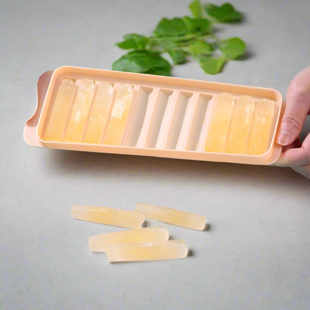 Beschikbaar in de kleuren blauw, groen en roze. De vorm heeft een afmeting van 23,5 x 8 cm en biedt ruimte voor meerdere lange ijsstaafjes tegelijk. De speciale uitsparingen zorgen voor snelle en gelijkmatige bevriezing. Perfect voor dagelijks gebruik of feestjes.