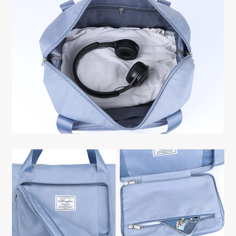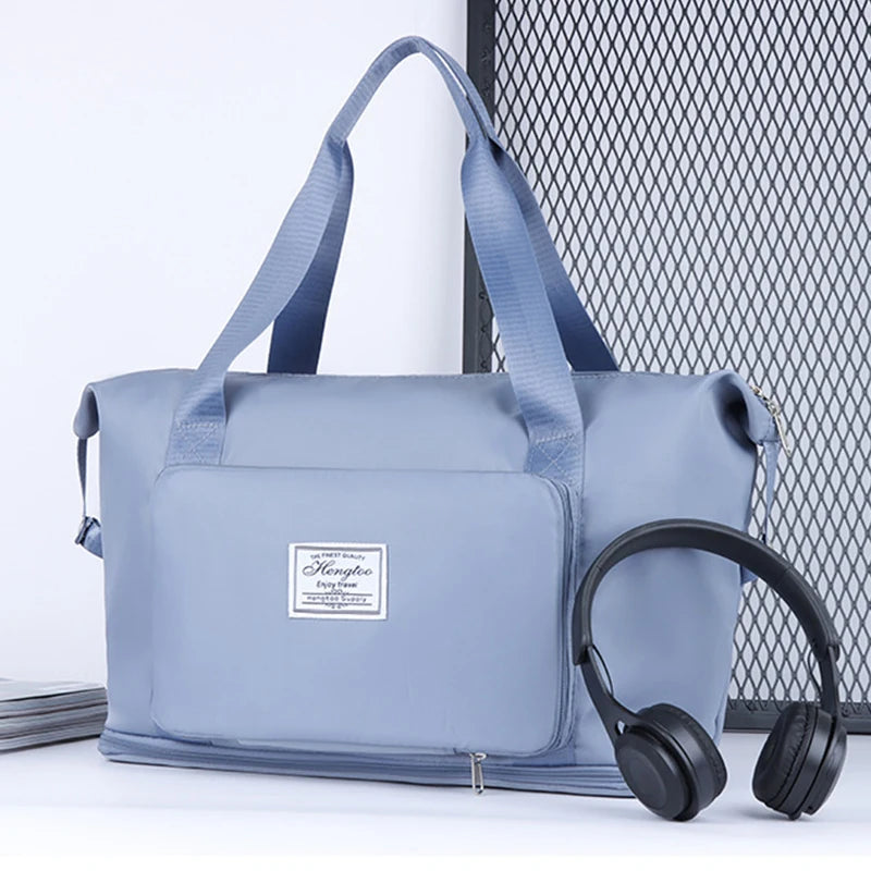 Ontdek het gemak van deze opvouwbare reistas met grote capaciteit, ideaal voor sport, reizen of dagelijks gebruik. Het waterdichte nylon beschermt jouw spullen tegen regen en vocht, terwijl het lichte gewicht comfort biedt tijdens het dragen. Dankzij het dubbele compartiment met aparte rits kun je natte en droge items eenvoudig scheiden, perfect voor een bezoek aan de sportschool of een weekendje weg.