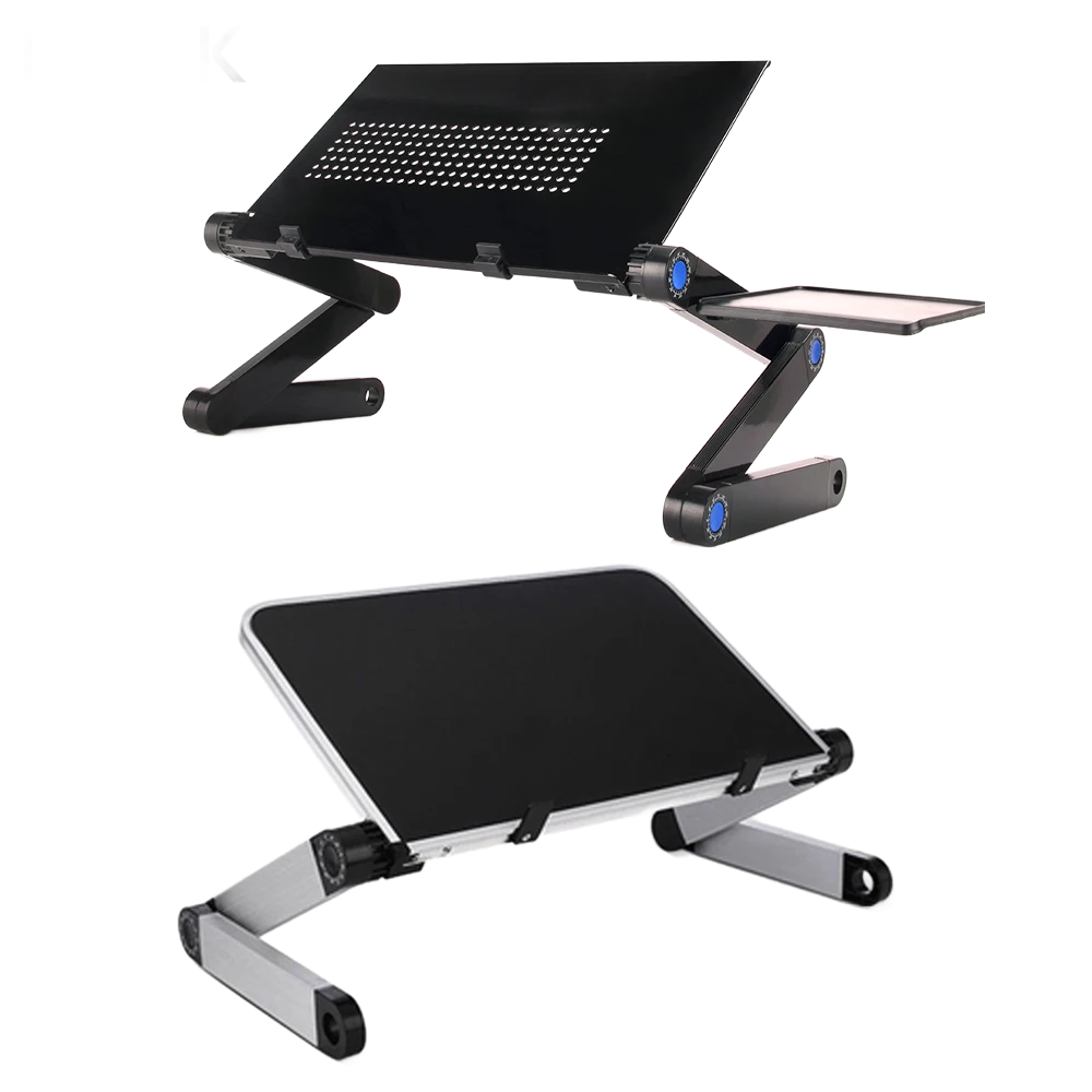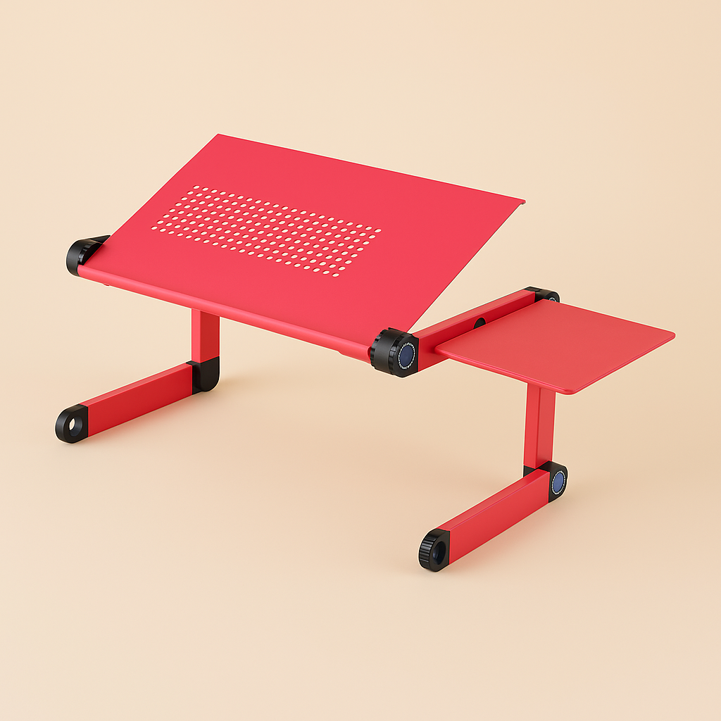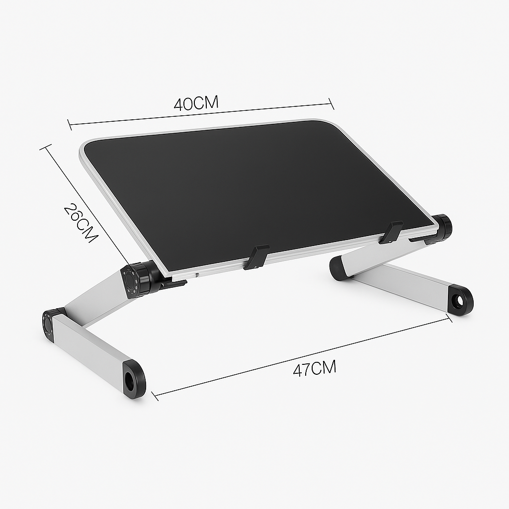 Werk overal comfortabel met deze verstelbare aluminium laptophouder. Ideaal voor gebruik op bed, bank of bureau en eenvoudig aan te passen voor optimale ergonomie. Het lichte, opvouwbare ontwerp maakt het gemakkelijk om te verplaatsen en op te bergen, terwijl de geïntegreerde muismat zorgt voor extra gebruiksgemak tijdens het werken of ontspannen.