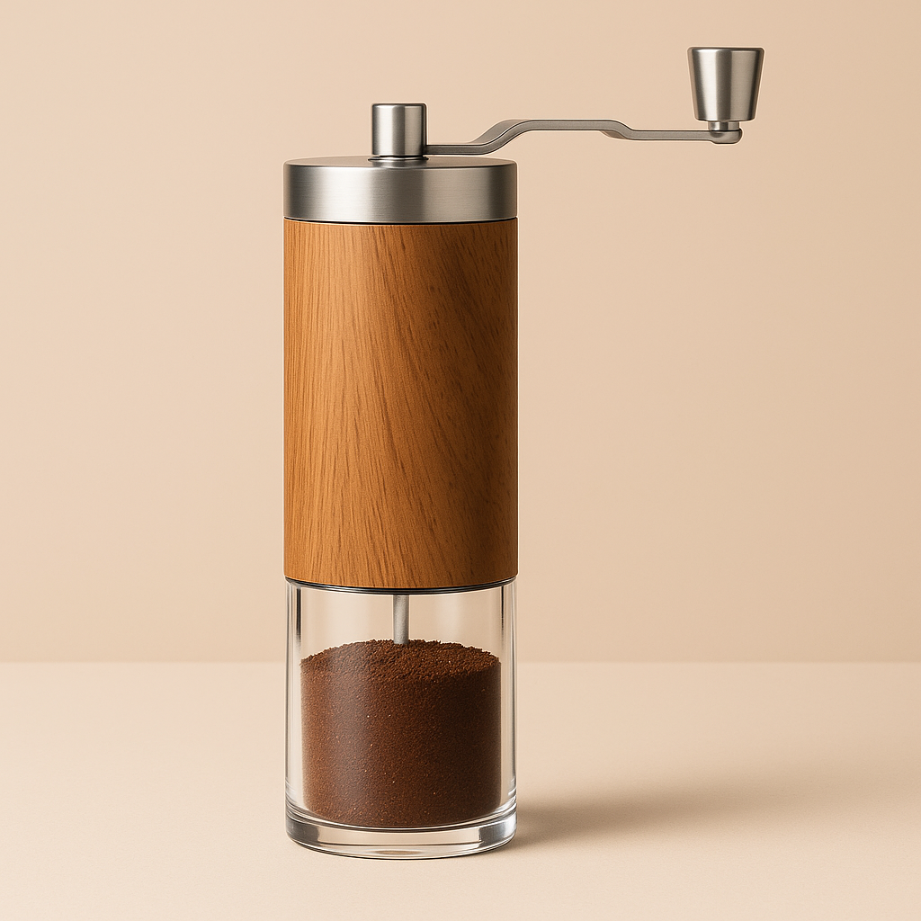 Vintage Handmatige Koffiemolen met Houtlook - Roestvrijstaal